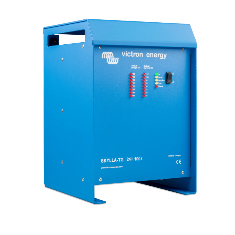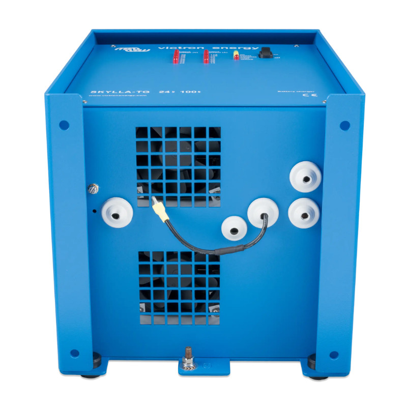 Skylla-TG 24/100 (1+1) to niezawodna, ciężka ładowarka przeznaczona do najbardziej wymagających zastosowań. Dzięki dwóm izolowanym wyjściom może jednocześnie ładować duży akumulator główny oraz mały akumulator startowy. Solidna konstrukcja i certyfikat GL sprawiają, że doskonale sprawdza się na łodziach, w instalacjach off-grid oraz w przemyśle.